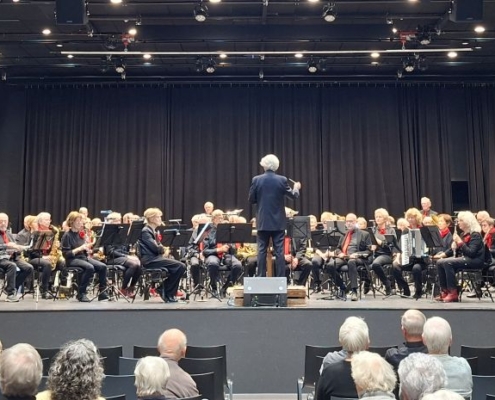 Op zondagmiddag 30 november 2025 hadden we een muzikale uitwisseling met het Regionaal Seniorenorkest Midden-Brabant. Dit vond plaats in Het Kwartier in Asten. ’s Morgens was dit orkest met de bus vanuit Hilvarenbeek vertrokken naar Asten. Voor een kille herfstmiddag was het prima toeven in de zaal. Onze voorzitter, voor de gelegenheid uitgerust met zonnebril, zag het in ieder geval zonnig in.